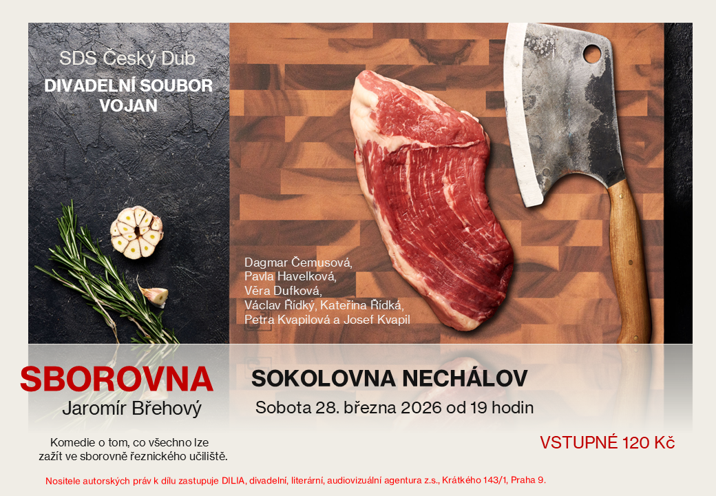 Divadelní představení: Sborovna 28.3.2026 Sokolovna Nechálov Publikováno 24.02.2026 | Autor: Obecní úřad Kobyly